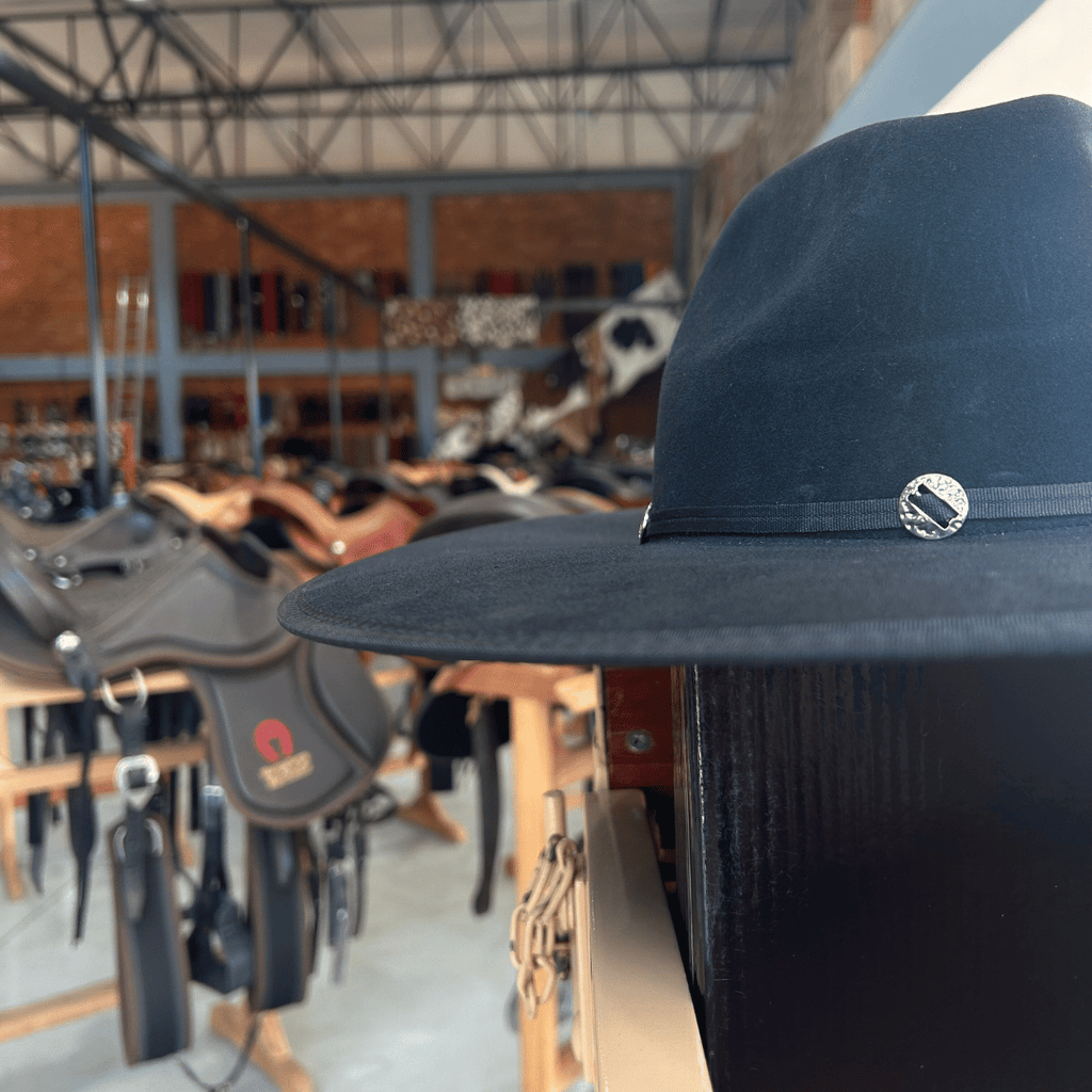 • Carneira Elástica; • Banda de Fita Gorgorão com aplicação de metal Marcatto; • Copa - 10,5cm; • Aba Debrum 11cm.