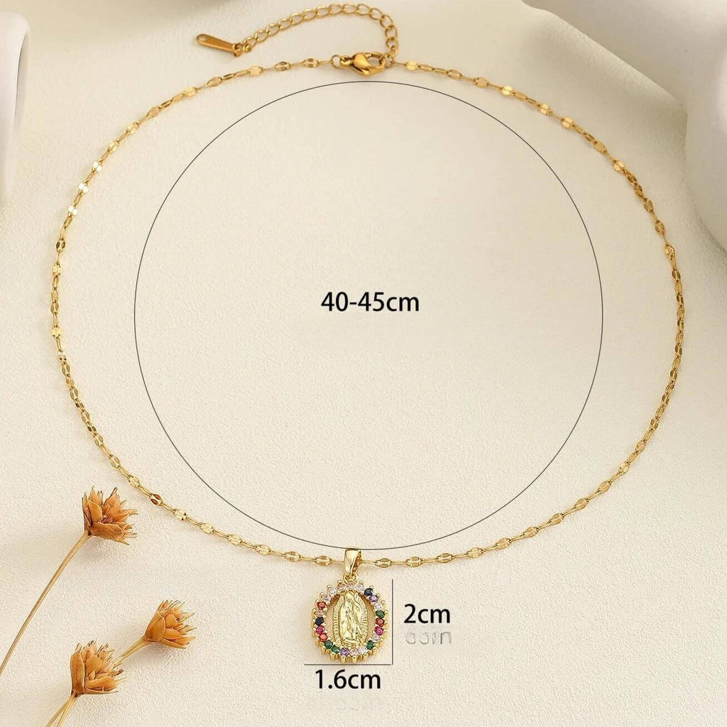 O Colar Zircão Virgem Maria Colorido Feminino combina a beleza dos zircões coloridos com a devoção à Virgem Maria. Cada pedra zircão é cuidadosamente selecionada para refletir cores vibrantes, enquanto o pingente da Virgem Maria acrescenta um toque de espiritualidade e proteção. Este colar é uma expressão única de fé e estilo.