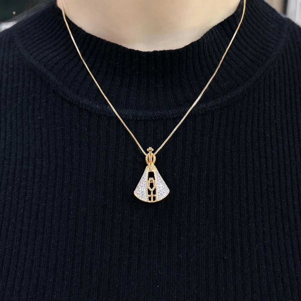 Adquira agora nosso Colar Nossa Senhora Aparecida - Dupla Face com Manto de Zircônia (COMPRE 1 LEVE 2) e deixe sua fé brilhar com elegância e graça em cada momento da sua vida! 🙏💖