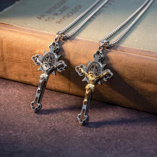 A medalha é uma das medalhas mais antigas e homenageadas utilizadas pelos cristãos e devido à crença em seu poder contra o mal também é conhecida como “medalha do perseguidor do diabo”. Já no século XI, pode ter inicialmente a forma da cruz de São Bento e foi usada pelo papa Leão IX. O verso da medalha traz a fórmula Vade retro satana ("Vá embora, Satanás!"), que tem sido usada pelos cristãos para afastar o mal desde o século XV. Às vezes carregado como parte do rosário, também é encontrado individualmente.
