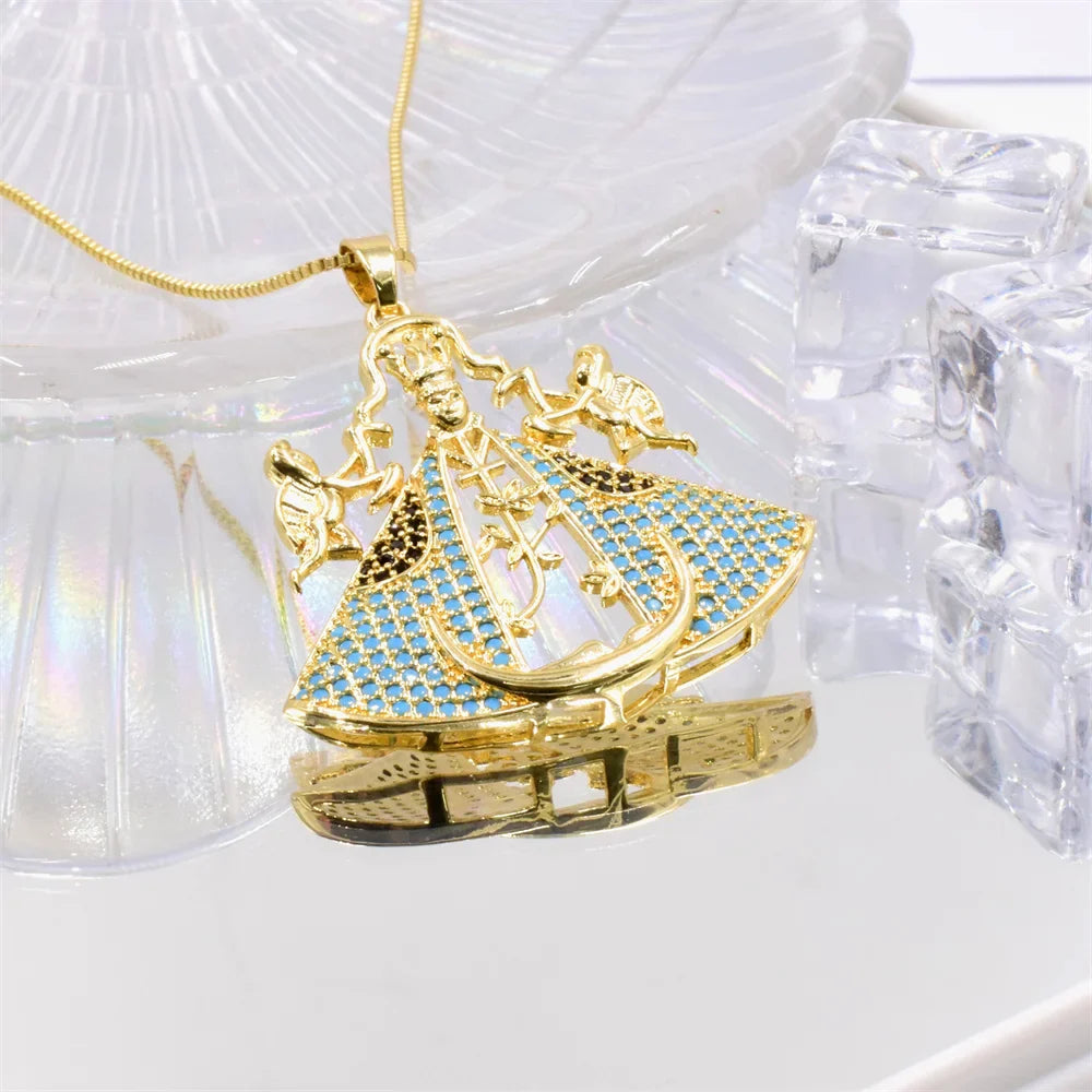 Design Encantador e Significativo: Cada detalhe deste colar é cuidadosamente trabalhado para refletir a beleza e a serenidade da fé na Virgem Maria de Aparecida, tornando-o uma adição elegante e espiritual ao seu visual.