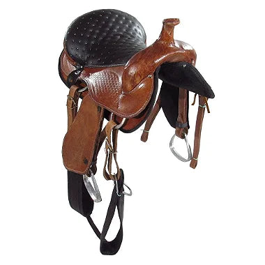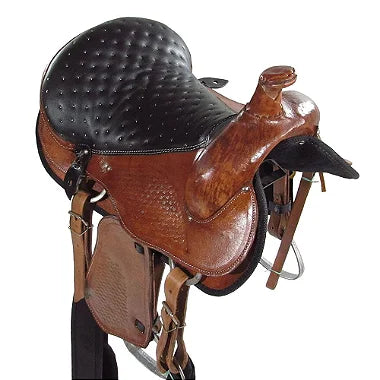 Sela Americana Tradicional, fabricada em couro, selecionado e tratado. Possui detalhes em rebaixo. Assento em couro vaqueta com detalhes costurado à mão, que garantem mais segurança, evitando escorregar sobre o mesmo. Revestido internamente com espuma, para proporcionar maior conforto ao cavaleiro/amazona. Meia-argolas em alumínio polido de alta resistência, livre de ferrugens. A armação de madeira é totalmente inervada em couro cru, com reforço na cabeça e no pito, resultando em maior resistência e durabilidade do produto. Suadores em feltro entregam mais conforto ao animal.