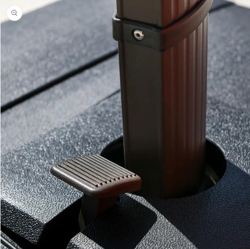 Estrutura super resistente, para operação de abertura/fechamento e pedal que gira 360°, garantindo cobertura durante todo o dia.