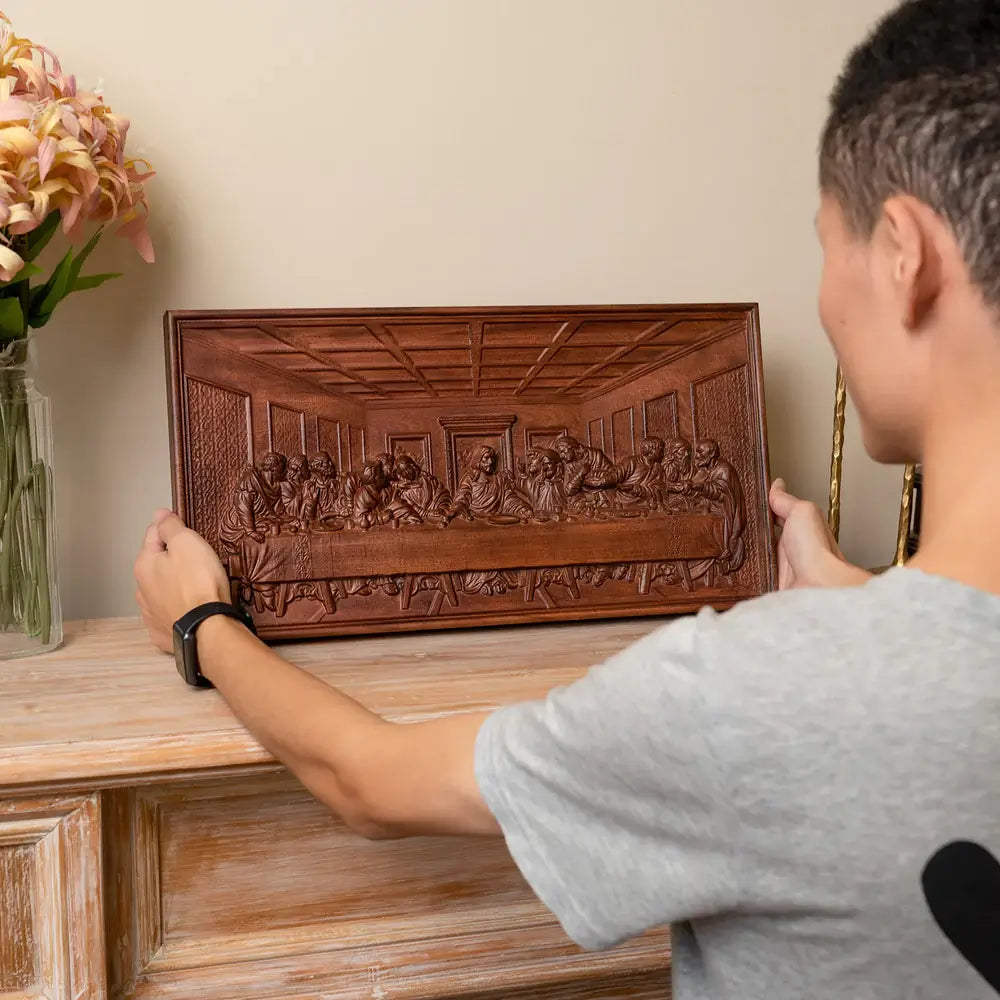 Última Ceia Ícone Religioso Esculpido em Madeira