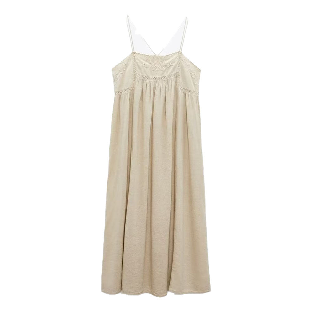 Vestido midi de alcinha em linho com elastano, apresentando detalhes em bordado. Com saia ampla e fluida, esse vestido oferece um visual casual elegante. Feito com tecido encorpado e confortável, o Vestido Cecí Midi é perfeito para destacar sua beleza em qualquer ocasião.
