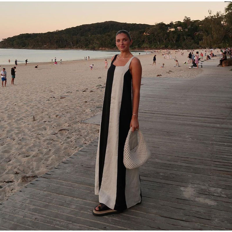 Vestido longo sem manga, apresentando saia ampla e fluida, esse vestido oferece um visual casual elegante. Feito com tecido encorpado e confortável, o Vestido Malú Longo é perfeito para destacar sua beleza em qualquer ocasião.